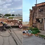 Muro histórico desaba em São Luís e atinge imóvel e postes
