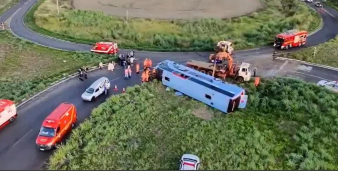 Um grave acidente envolvendo um ônibus deixou ao menos dez mortos e diversos feridos na madrugada desta terça-feira (8) em Araguari, no interior de Minas Gerais. O capotamento do ônibus, que transportava cerca de 50 pessoas, ocorreu por volta das 3h40 na rodovia estadual MG-223, no sentido Tupaciguara, próximo ao trevo de Queixinho, na altura do quilômetro 223.