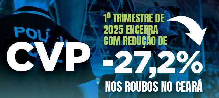 O empenho e a integração das Forças de Segurança do Estado, aliados aos constantes investimentos realizados pelo Governo do Ceará, possibilitaram a redução de 27,2% nas ocorrências de roubo em todo estado do Ceará, no primeiro trimestre de 2025. Todas as regiões do estado também registraram retração no período. É o melhor resultado do índice de Crimes Violentos contra o Patrimônio (CVPs) no Ceará, em Fortaleza e na região Sul (considerando os primeiros trimestres) de toda a série histórica, iniciada em 2009.