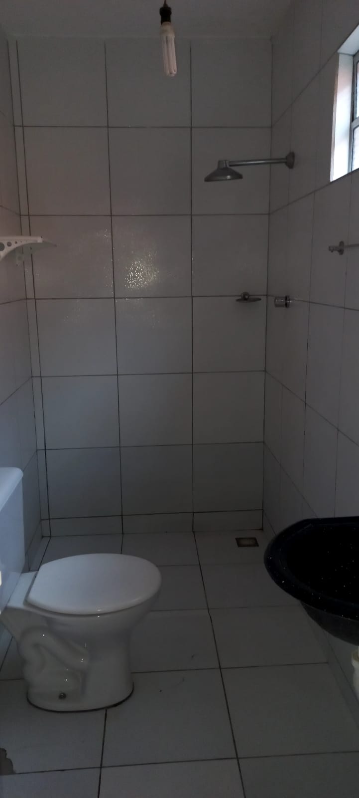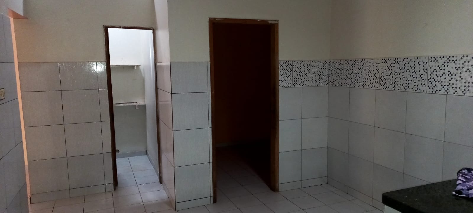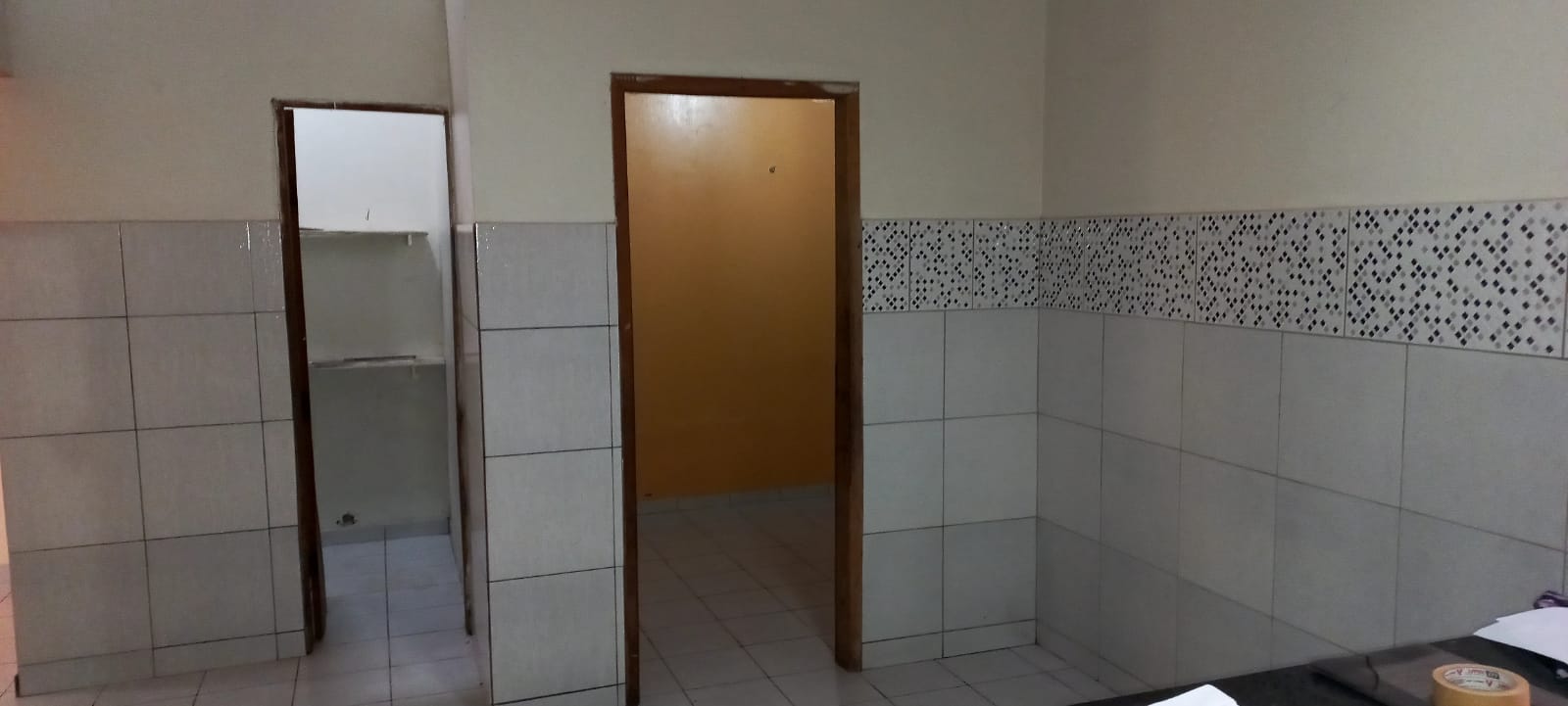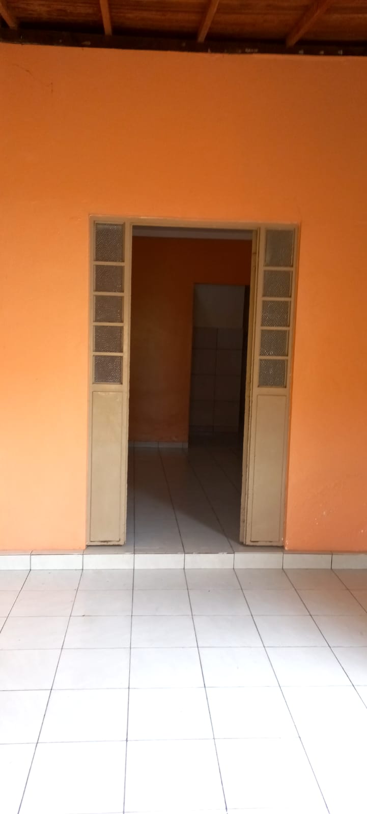 O imóvel possui uma área com capacidade para estacionar dois carros, duas salas grandes, dois quartos de solteiro, um quarto de casal, uma dispensa, um banheiro equipado, uma área de serviço com pia e ainda um quintal.
