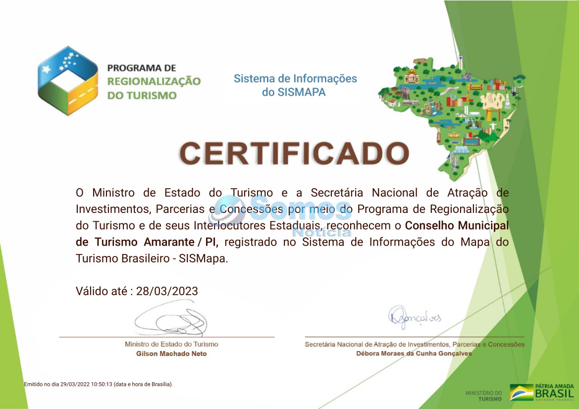O Ministério também reconheceu o Conselho Municipal do Turismo de Amarante, com registro no Sistema de Informações do Mapa do Turismo Brasileiro.