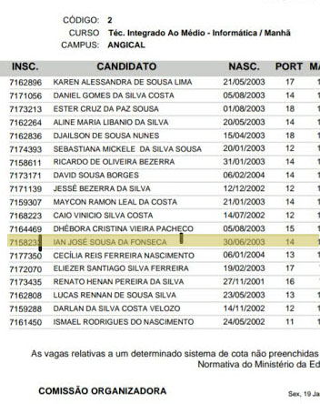 O Colégio Pitágoras II, integrado ao Grupo Pitágoras, em Amarante, teve outros dois alunos aprovados: Lilya Rafaelle Cardoso Soares, 14 anos, na 16ª colocação para o curso de Administração, e Ian José Sousa da Fonseca, 14 anos, que passou na 13ª colocação para o curso de Informática.