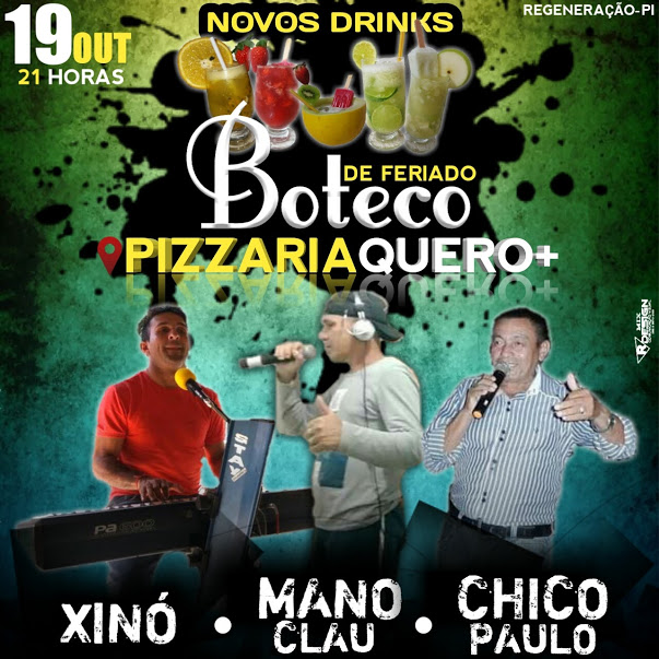BOTECO DE FERIADO – Os amantes da boa música vão ter um encontro especial nesta quinta-feira (19) com Mano Clau, Chico Paulo e Xinó no Boteco da Pizzaria Quero Mais, em Regeneração, a partir das 21h.