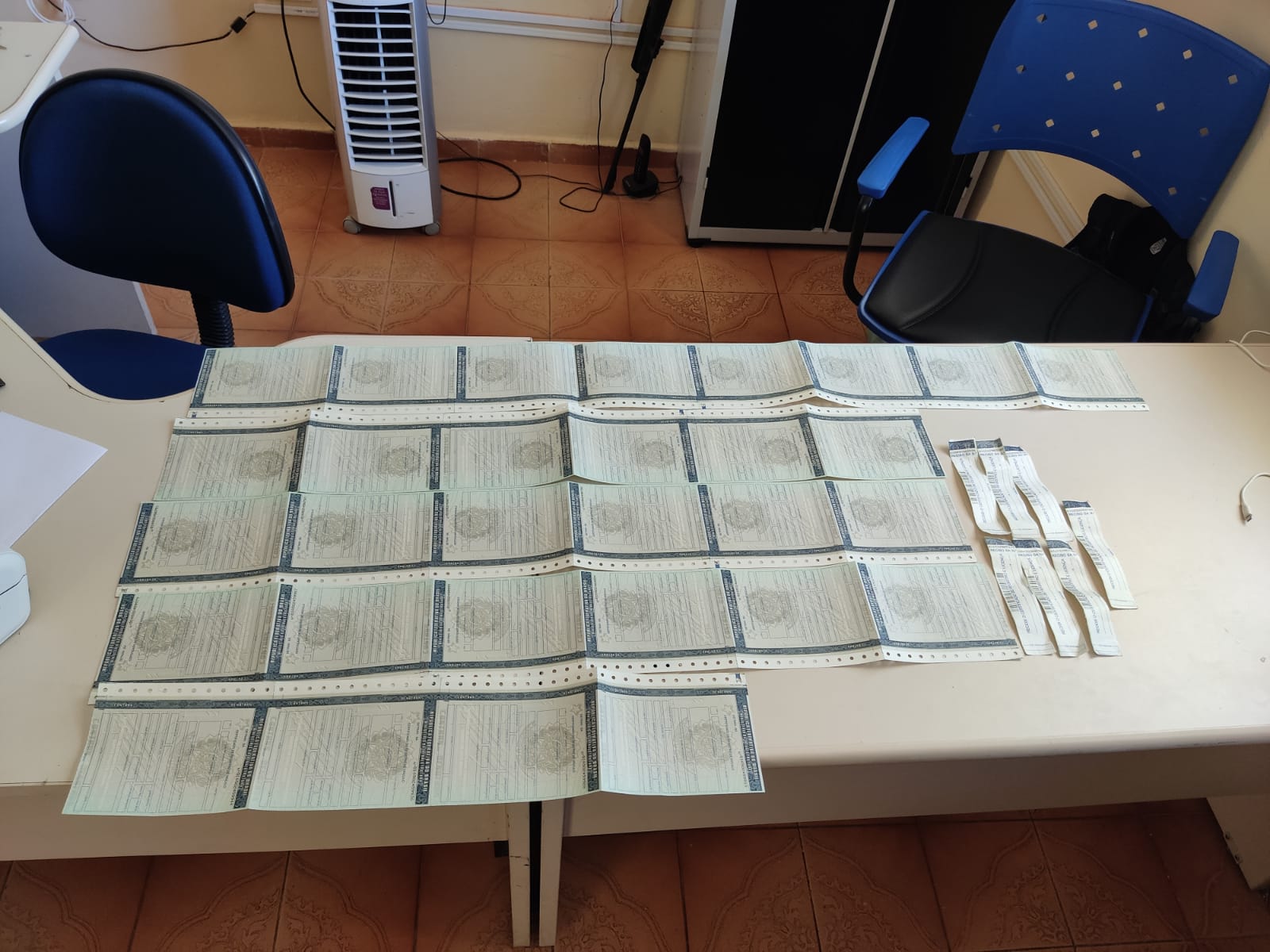 Na casa de outro suspeito de participação do crime, que se encontra foragido, foram encontradas quatro motocicletas com sinais de adulteração, ferramentas, possivelmente utilizadas para adulteração de sinais identificadores, 30 CRV’s em branco, possivelmente utilizados para inserção dos sinais veiculares após feitas as adulterações nos mesmos.