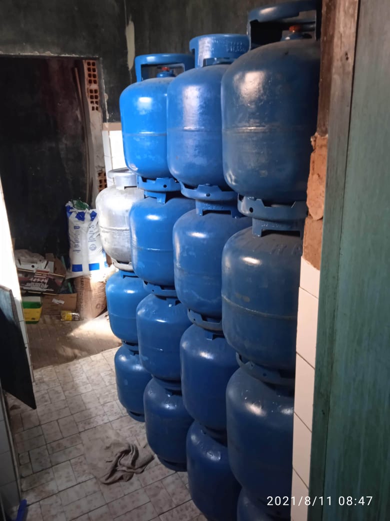 Na ação foram apreendidos aproximadamente 267 botijões de gás GLP em um dos depósitos do comerciante investigado, que foi preso.