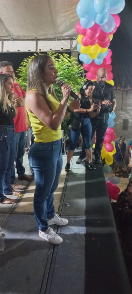 A vice-prefeita de Pinhheiros-MA, Ana Paula, falou ao público destacando as obras de Flávio Dino no estado, especialmente em São Francisco do Maranhão. “Tenho andado com Flávio Dino e isso é muito fácil porque ele passou 7 anos e meio governando muito bem o Maranhão. Por onde a gente passa tem a marca dele, que olhou com muito carinho e respeito aos municípios, a exemplo de São Francisco do Maranhão”, disse ela.