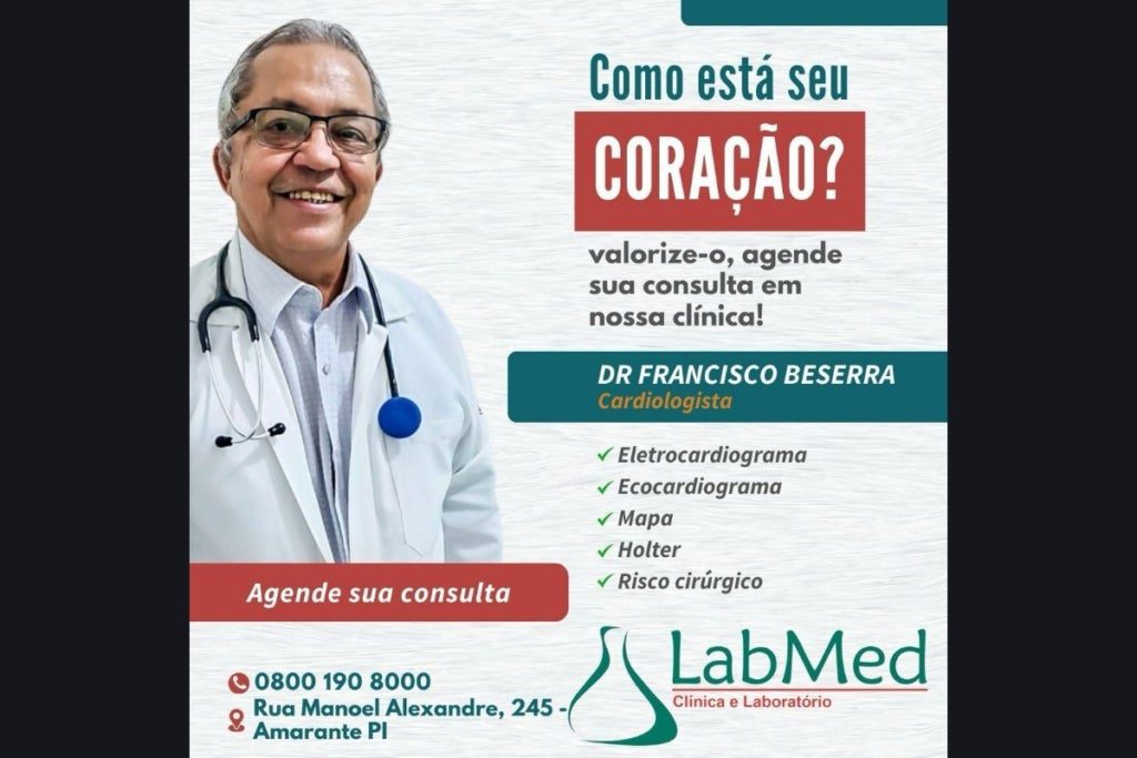 O médico cardiologista, Dr. Francisco Bezerra, vai atender em Amarante, neste sábado (23), na LabMed. Os atendimentos terão início às 08h. Os agendamentos já podem…