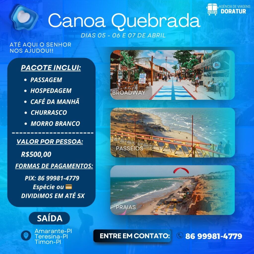 Não perca essa oportunidade! Entre em contato com a Dora Tur pelo telefone 86 99981-4779 e reserve já o seu lugar nessa viagem inesquecível.