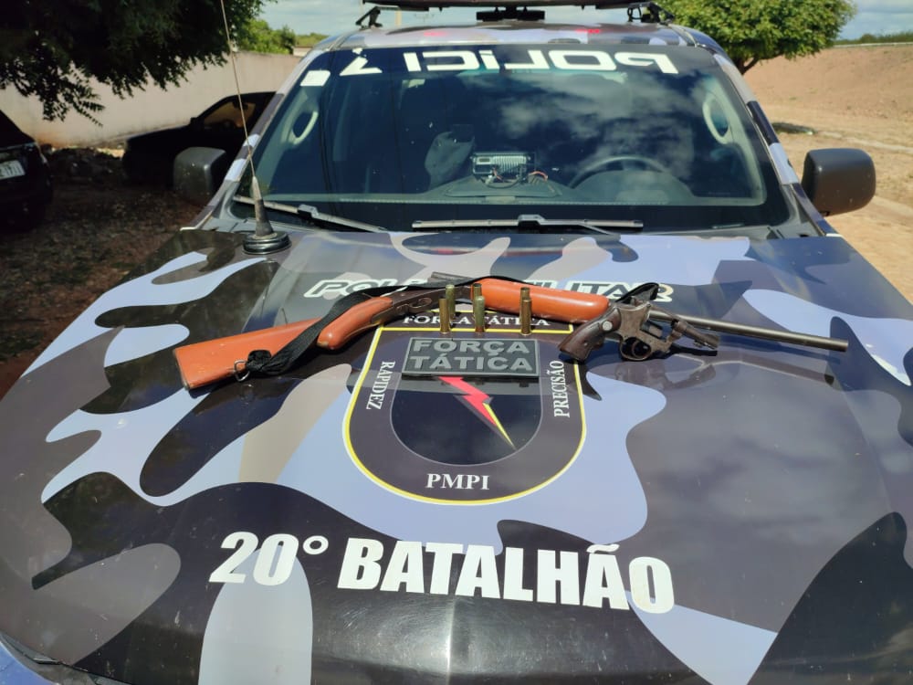 As armas encontradas foram um revólver calibre 38 e uma espingarda, calibre 28. “Foi dada voz de prisão ao nacional e feita a sua condução à Delegacia Regional de Polícia Civil de Picos para os procedimentos de que o caso requer”, disse ao Somos Notícia o comandante do 20º BPM, major Félix.