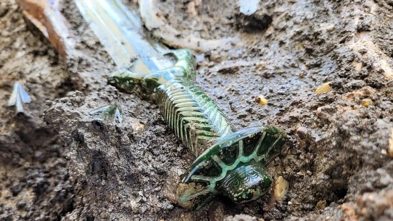 Arqueólogos encontraram uma espada de bronze da Idade do Bronze Média em Nördlingen, na Suábia, sudoeste da Alemanha, em 2023. A peça, datada de cerca de 3.400 anos, integra o raro grupo das espadas octogonais conhecidas no sul da Alemanha. O Escritório Estatal da Baviera para a Preservação de Monumentos promoveu um estudo científico detalhado em Berlim para investigar sua fabricação e decoração.