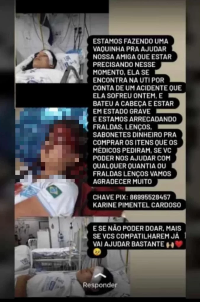 A chave pix para quem puder ajudar é: 86995528457 – e tem como titular: Karine Pimentel Cardoso