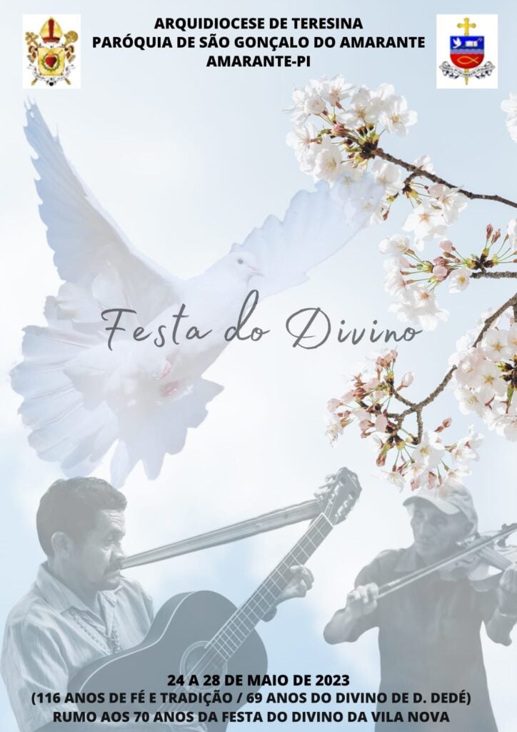 A Festa do Divino 2023 está chegando e promete ser mais uma vez um momento de fé e tradição para os moradores da Vila Nova, como também à comunidade católica de Amarante. Este ano, a festa celebra os 116 anos de história, além de marcar os 69 anos do Divino de Dona Dede, que caminha rumo aos 70 anos.