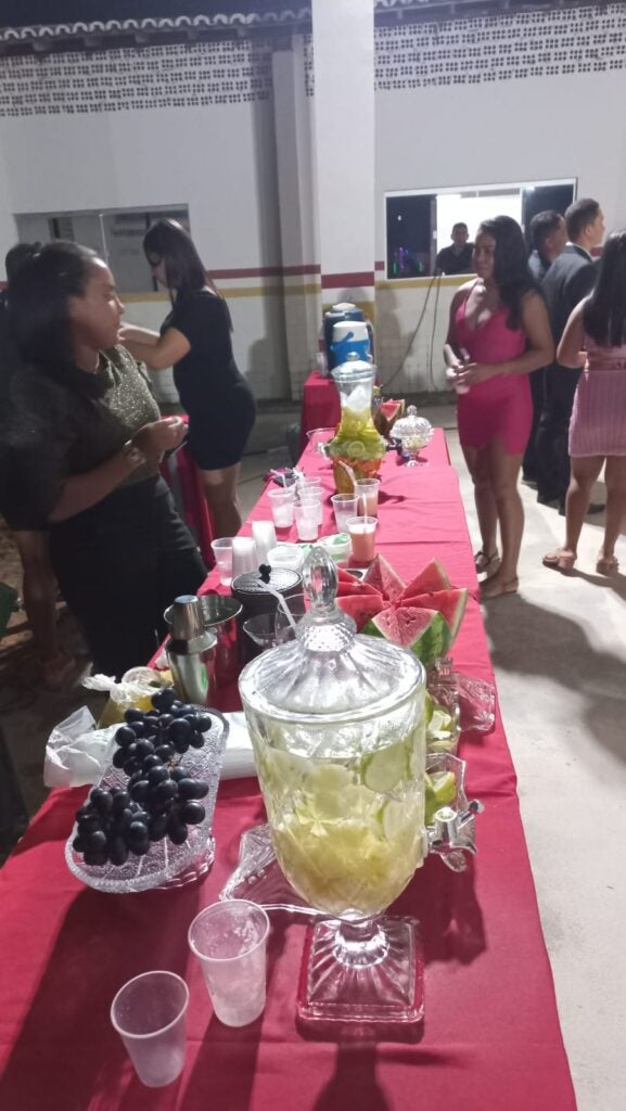 Às mães foi oferecido um coquetel seguido por um jantar preparado pela equipe de merendeiras. O cardápio também incluiu um caldo, acompanhado de drinks especiais preparados pelas professoras. A equipe escolar se dedicou a servir as mães, servindo água, refrigerantes e comida durante todo o evento.