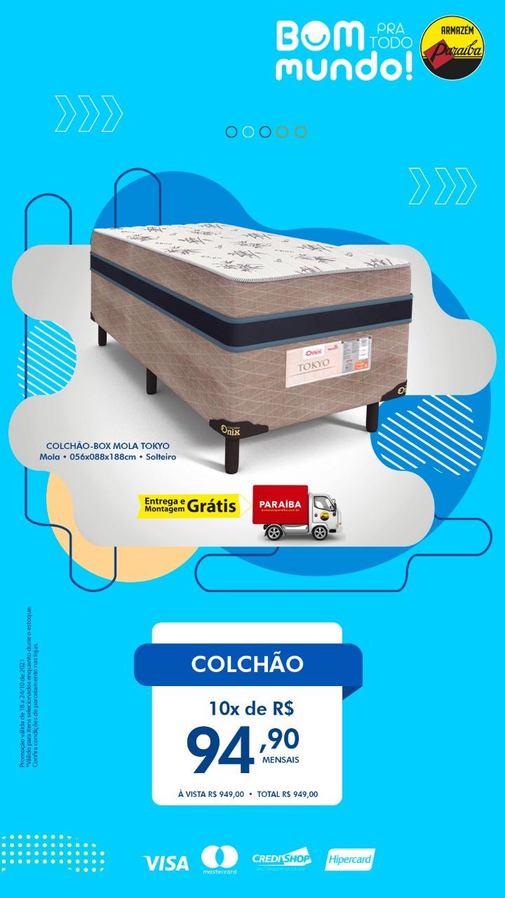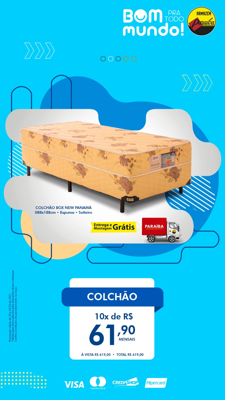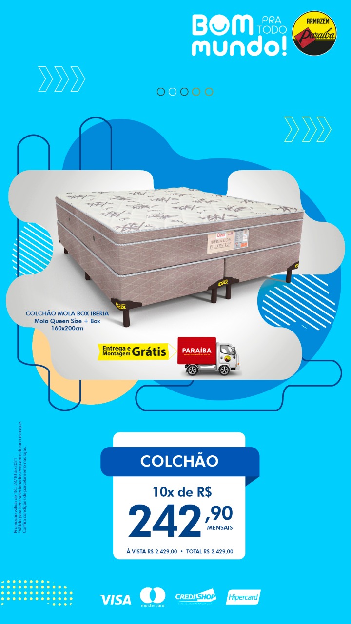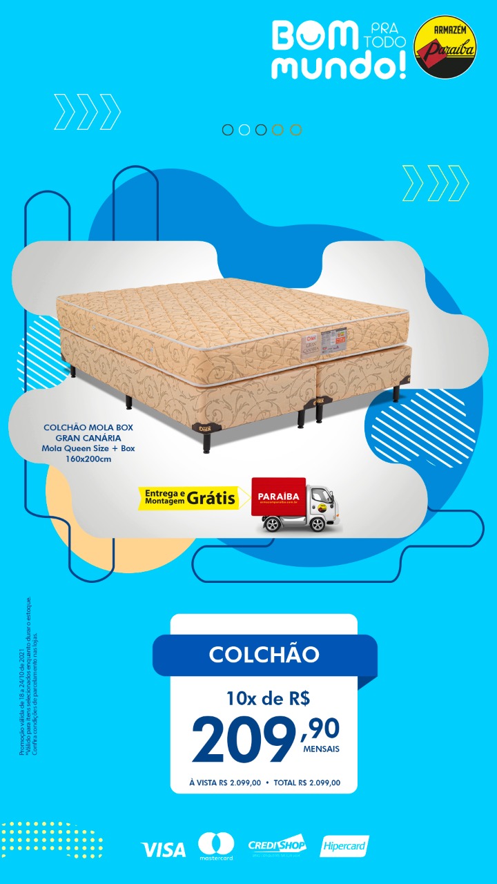 Outras grandes oportunidades estão nas ofertas de colchões-box mola com entrega e montagem grátis, tudo em até 10x no cartão de crédito.