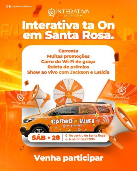 A Interativa Telecom realizará uma ação promocional com a presença do carro do Wi-Fi, sorteio de prêmios e distribuição de lanches. A música ao vivo será o ponto alto do evento, com a apresentação musical da dupla Jackson e Letícia.