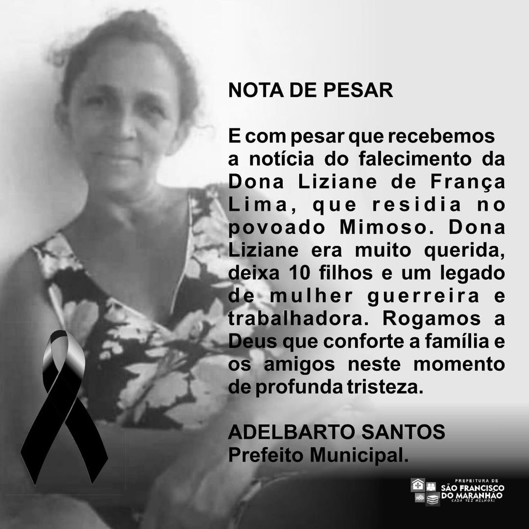 Numa publicação em homenagem à franciscoense, o prefeito Adelbarto Santos deixou também um pedido a Deus, de conforto à família e amigos pela perda. “Dona Liziane era muito querida, deixa 10 filhos e um legado de mulher guerreira e trabalhadora”, disse ele.