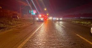 Na região, segundo a Polícia Militar, tem caído fortes chuvas nos últimos dias, deixando a pista molhada e vários pontos de alagamento na lateral da pista. O ônibus caiu sobre uma lagoa formada pela água das chuvas.