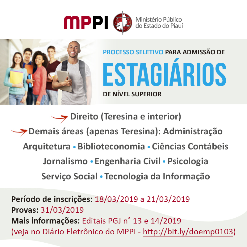 O Ministério Público do Piauí, através do Centro de Estudo de Aperfeiçoamento Funcional (CEAF), anunciou nesta sexta-feira (1º) em seu site a realização de novo processo seletivo com o fim de admitir novos estagiários de nível superior.