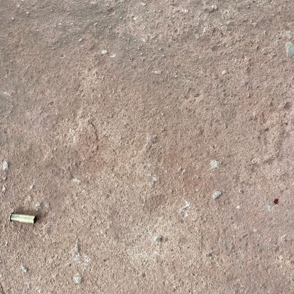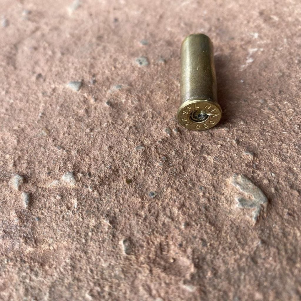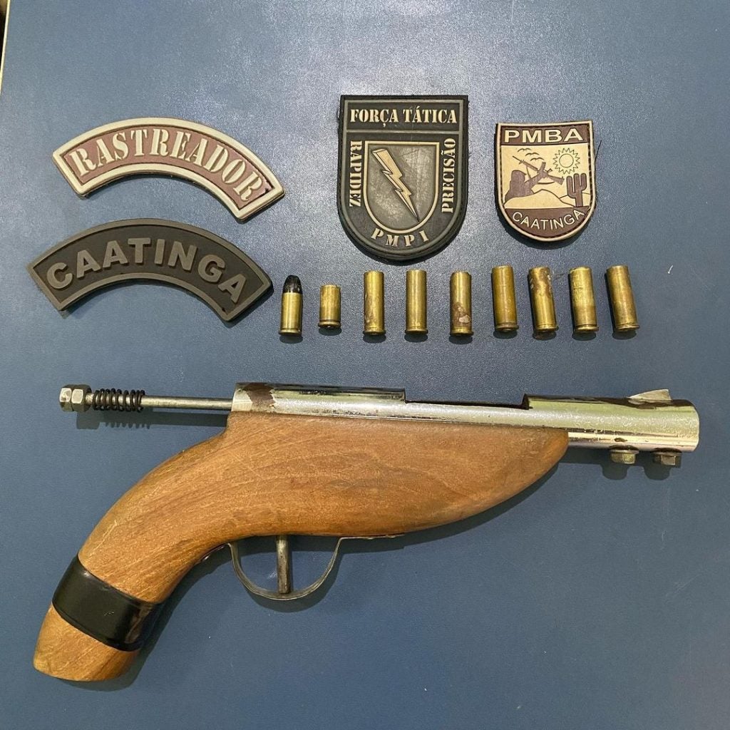 “Ato contínuo juntamente com a equipe da Força Tática, já na residência do casal, na entrada, foi encontrado um cartucho cal. 38 deflagrado. Dentro da residência foi encontrada uma arma artesanal cal. 38 com uma munição intacta. No chão, perto da porta da cozinha, foram encontrados 7 cartuchos deflagrados todos do mesmo calibre”, finalizou.