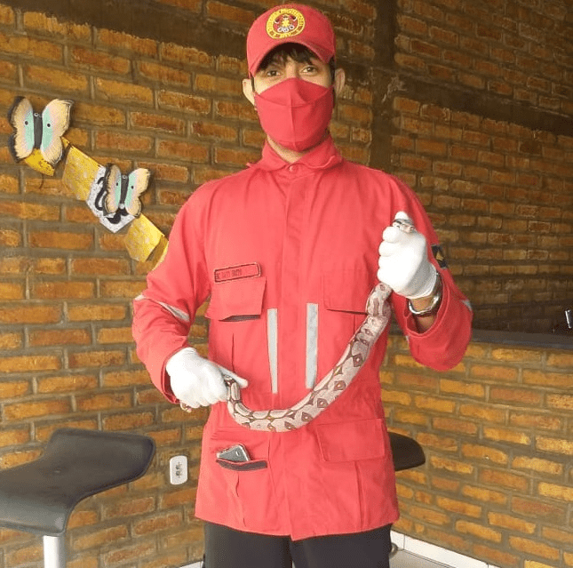 Ele identificou que se tratava de uma cobra Jiboia, e logo resgatou e devolveu o animal à natureza.