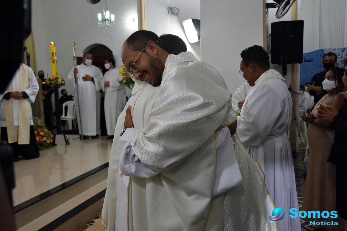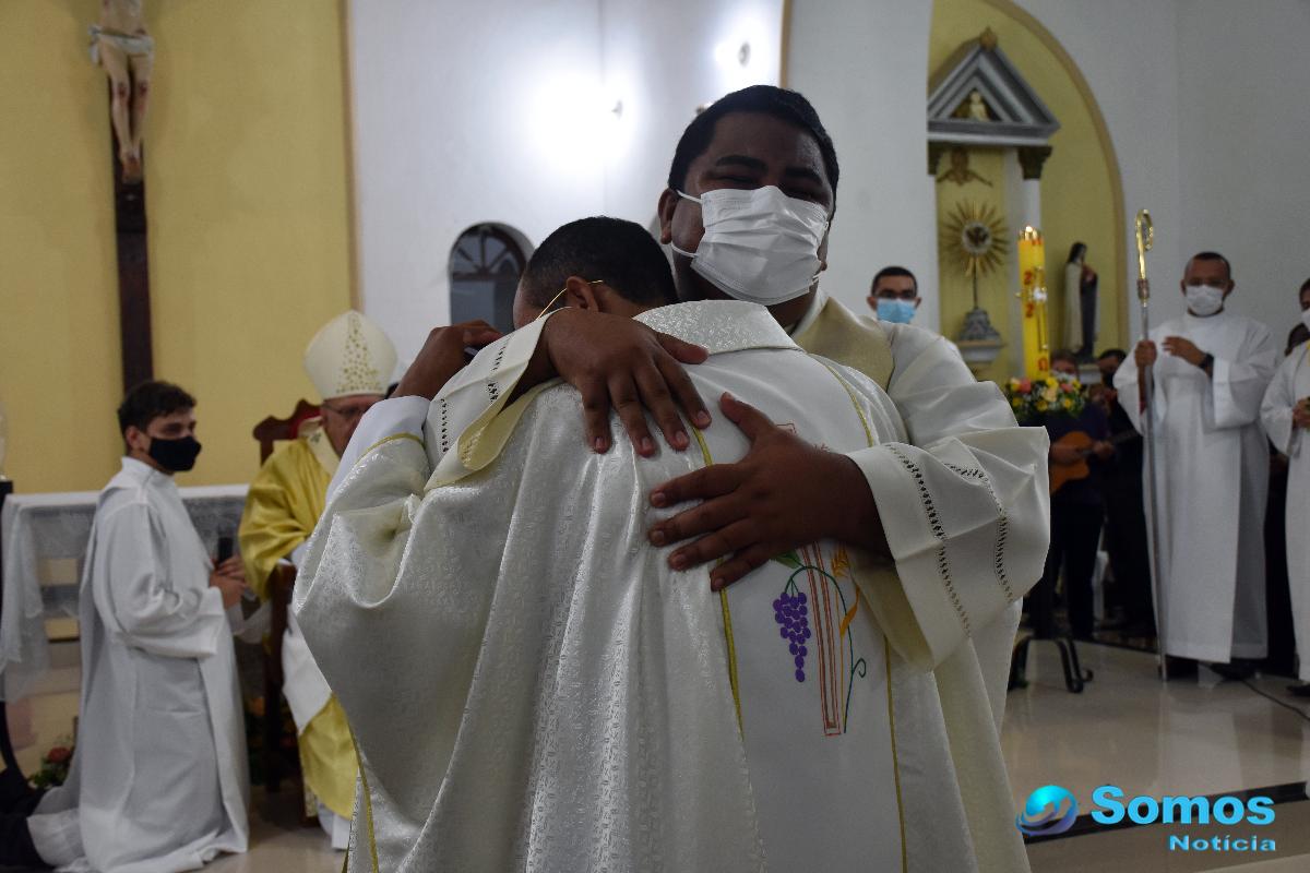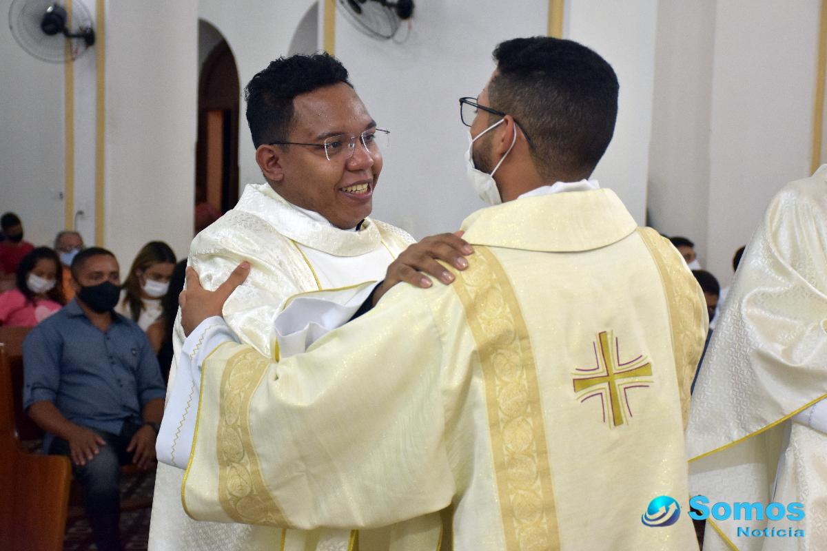 “Virgílio e Adriano! O SIM de vocês nos enche de alegria, o SACERDÓCIO de vocês nos enche de esperança, a JUVENTUDE de vocês nos enche de sonhos, a FÉ de vocês enfeita a nossa Igreja e o nosso presbitério!”, disse o ministro de Eucaristia, João Filho.