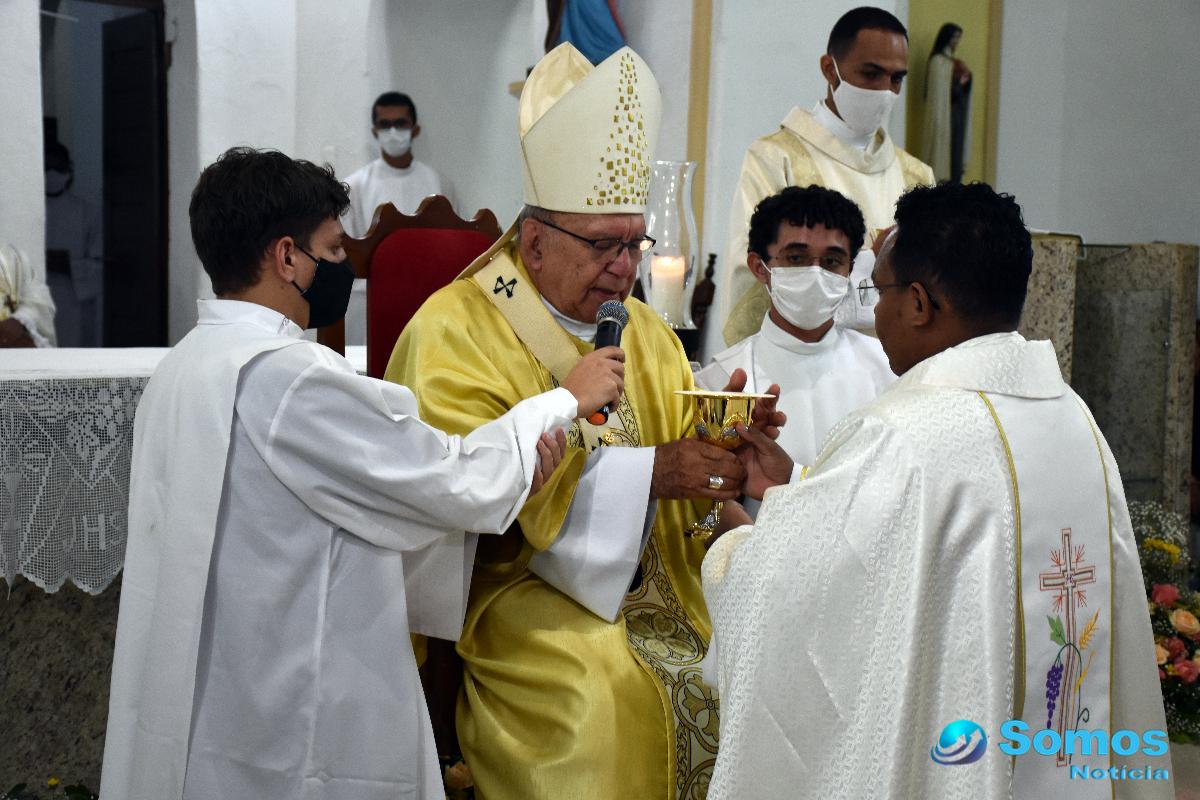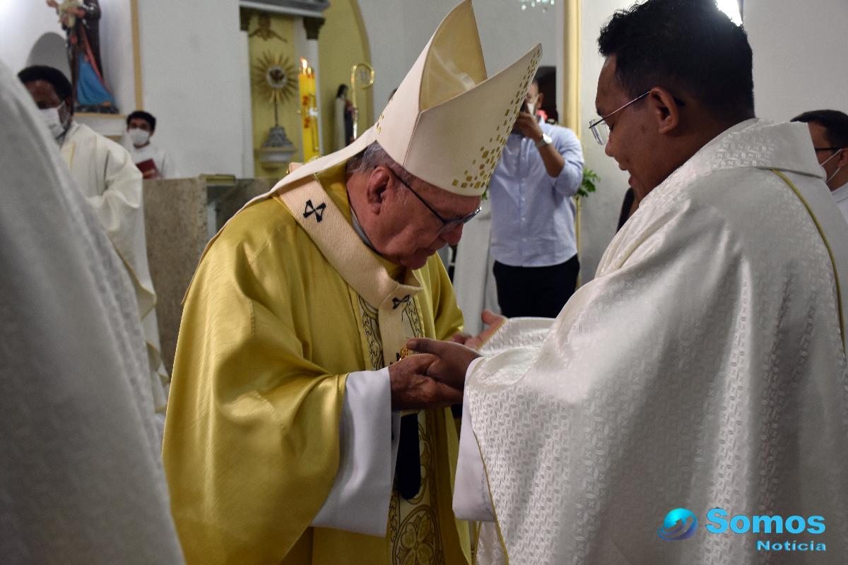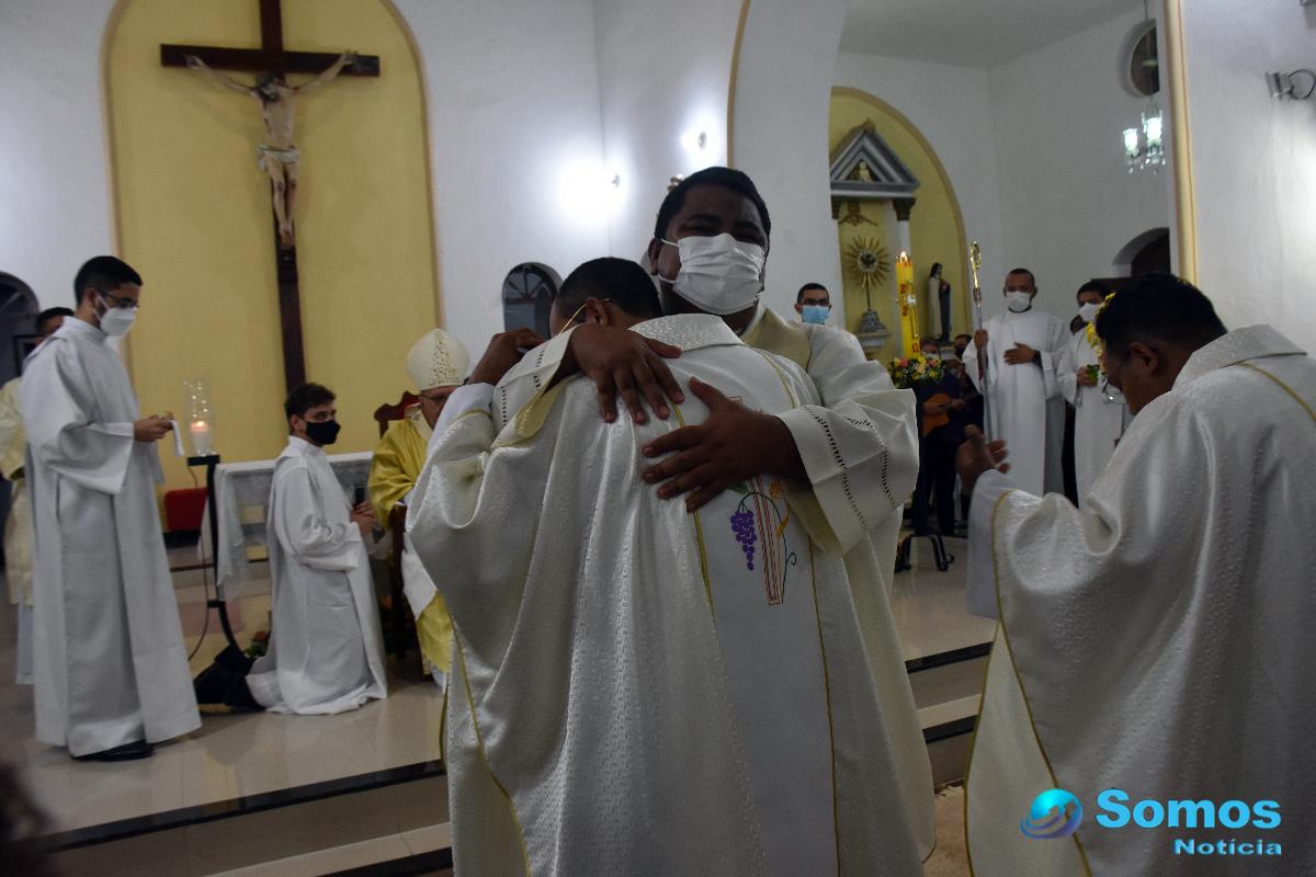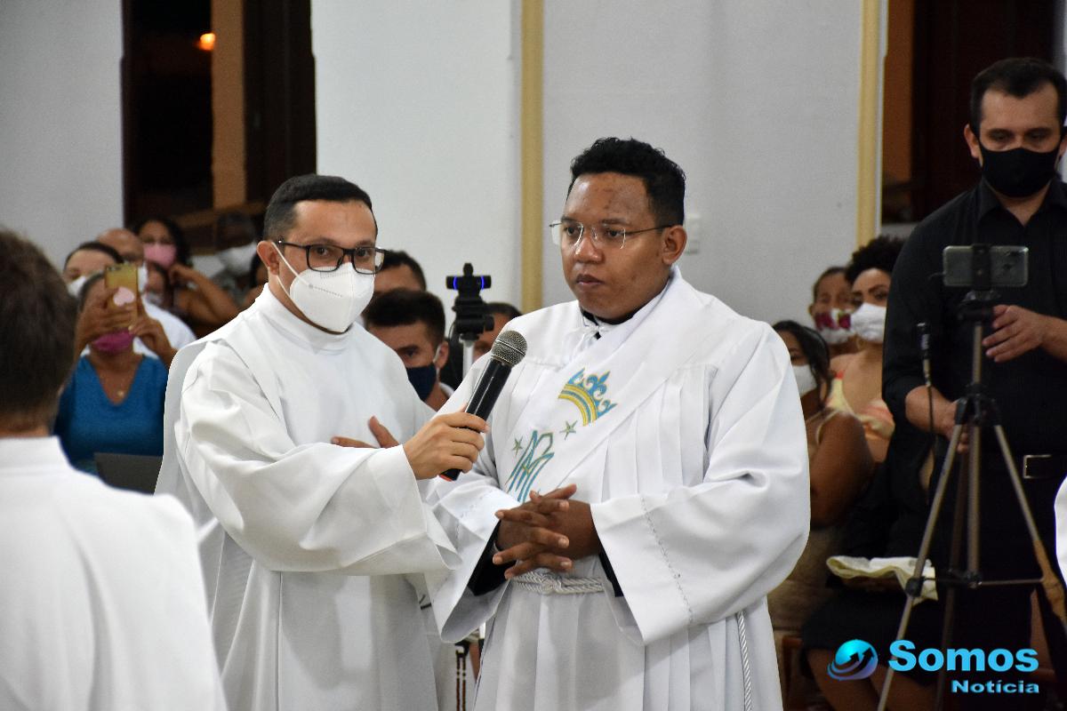 “Virgílio e Adriano! O SIM de vocês nos enche de alegria, o SACERDÓCIO de vocês nos enche de esperança, a JUVENTUDE de vocês nos enche de sonhos, a FÉ de vocês enfeita a nossa Igreja e o nosso presbitério!”, disse o ministro de Eucaristia, João Filho.