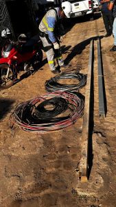 A polícia apreendeu cabos de energia e dois postes metálicos da Equatorial Maranhão, além de vara de manobra e cinto de paraquedista, ferramentas utilizadas para a prática criminosa de furto de energia.