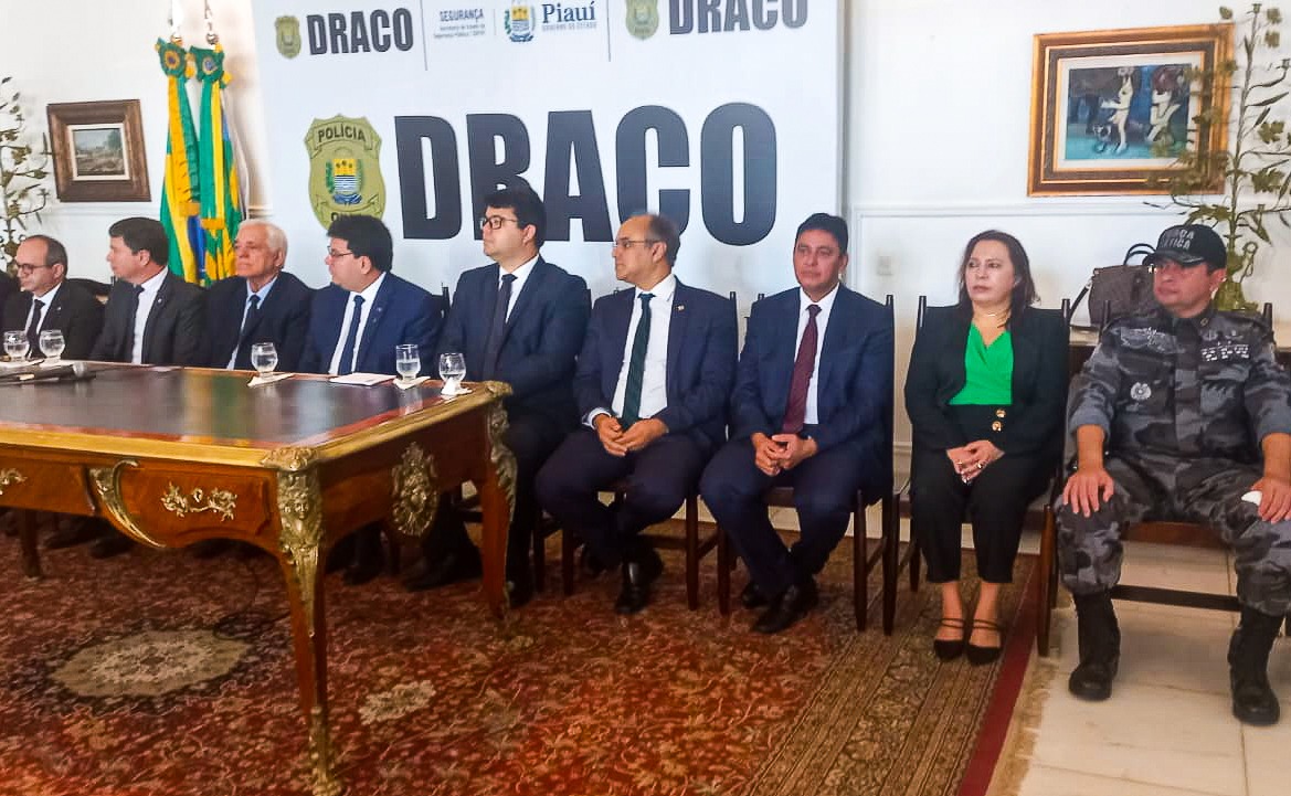O Procurador-Geral de Justiça do Piauí (PGJ-PI), Cleandro Moura, e a coordenadora do Grupo de Atuação Especial de Controle Externo da Atividade Policial (GACEP), Fabrícia Barbosa, participaram, nesta sexta-feira (3), da solenidade de lançamento do Departamento de Repressão às Ações Criminosas Organizadas (Draco). O evento aconteceu na sede do Palácio do Karnak, em Teresina.