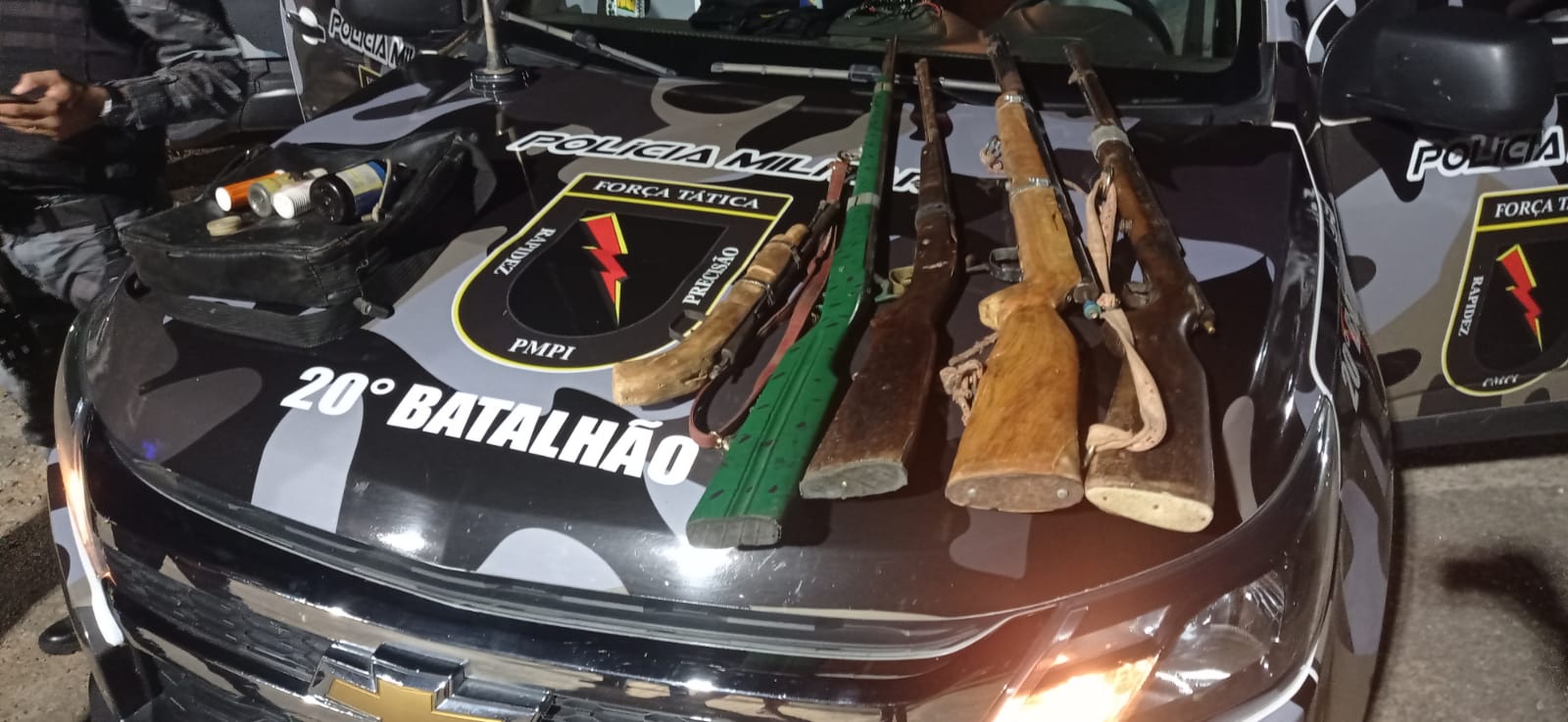 “Diante da informação recebida imediatamente a guarnição de serviço se dirigiu à residência onde, ao chegar, a companheira do nacional C. S autorizou a entrada dos policiais militares no interior da propriedade rural sendo encontradas cinco espingardas artesanais do tipo bate-bucha”, disse o major ao Somos Notícia.