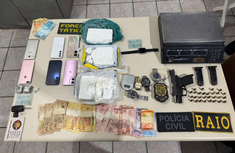 Na operação, denominada “Tríade”, um homem, de 40 anos, foi preso em flagrante. No imóvel em que ele estava, foram localizadas uma arma de fogo, munições e mais de dois quilos de cocaína. O suspeito conta com antecedentes criminais por dois crimes de homicídio, por dois crimes de tráfico de drogas e por integrar organização criminosa. A equipe verificou que, em desfavor do indivíduo, também havia um mandado de prisão preventiva por integrar organização criminosa, que foi cumprido.