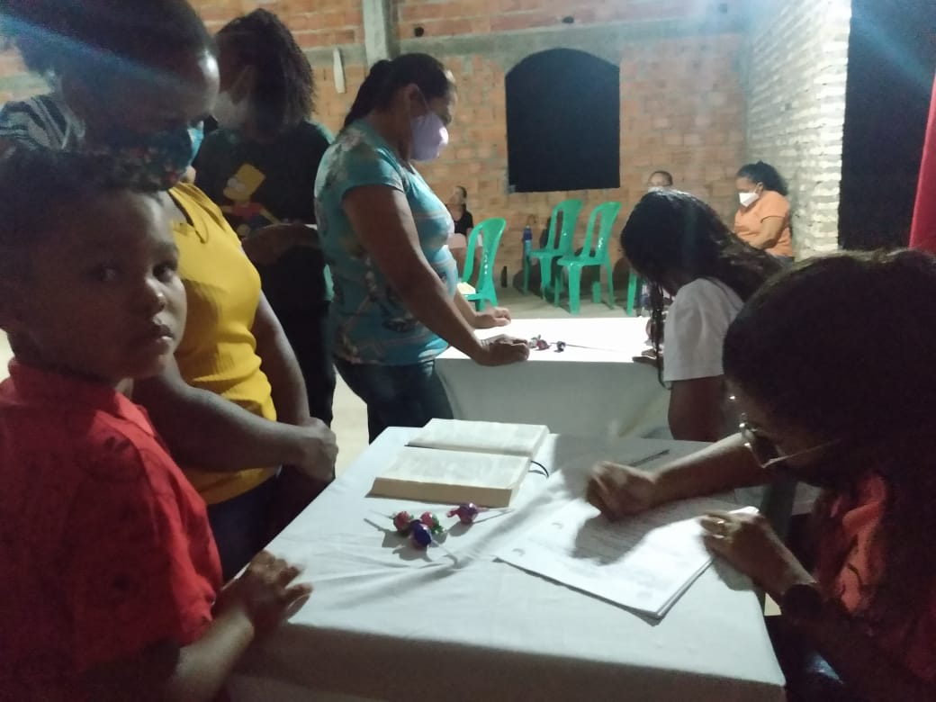 A celebração teve a participação de muitas crianças e adolescentes, confirmando suas inscrições para a Catequese. “Os jovens (da comunidade) estavam todos na igreja para o momento da inscrição”, explicou a moradora Maria Arlete.