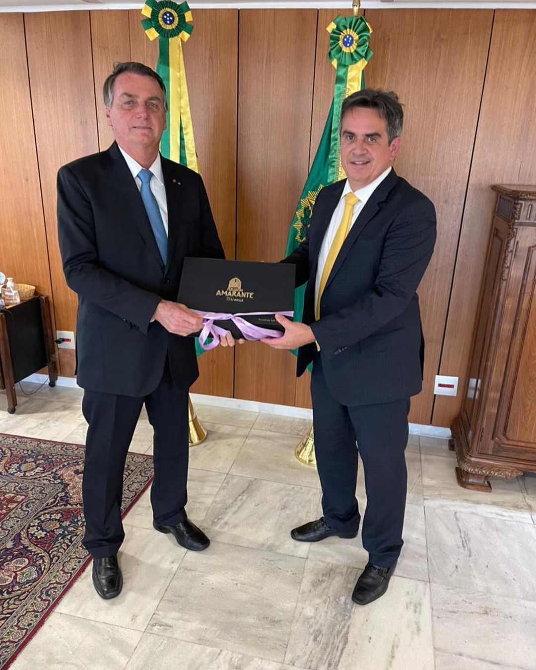 O presidente Jair Messias Bolsonaro recebeu das mãos do ministro-chefe da Casa Civil – Ciro Nogueira, em Brasília, o material da campanha do aniversário de 150 anos de emancipação política de Amarante, comemorado no último dia 04 de agosto.