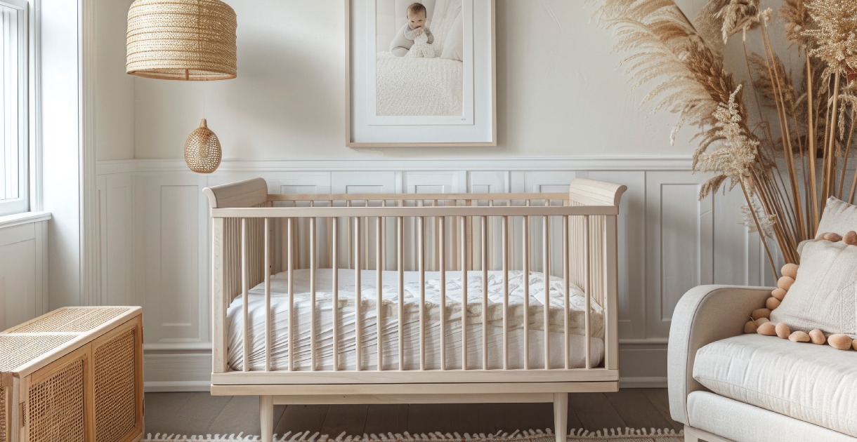 - Berço: O berço é o ponto central do quarto, então escolha um modelo que combine com o estilo do ambiente. Para um visual moderno, um berço branco com linhas simples e retas é uma ótima opção. Já para um estilo mais rústico ou vintage, o berço de madeira natural traz um toque acolhedor.
