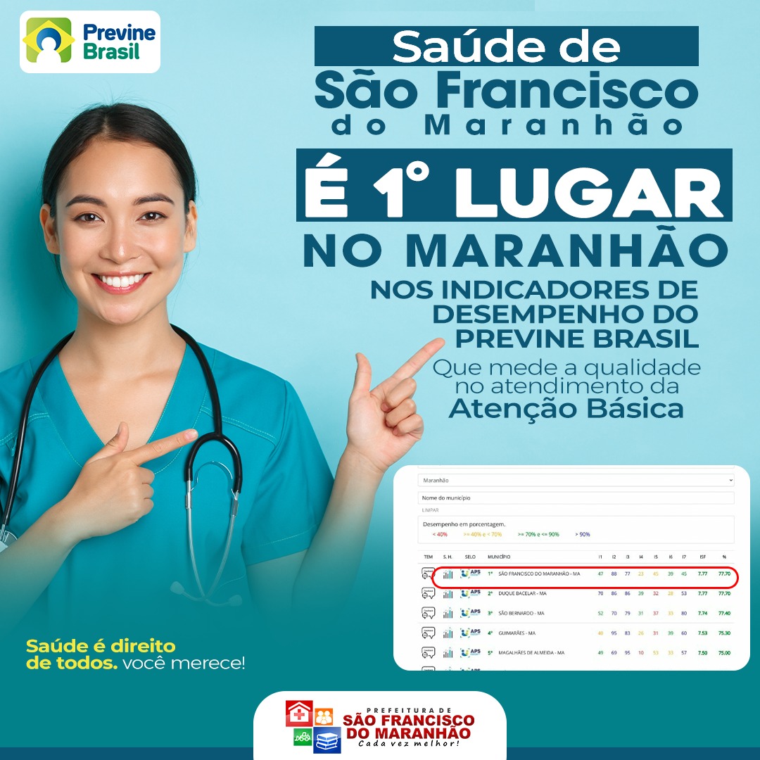 O município de São Francisco do Maranhão alcançou a primeira colocação nos resultados dos indicadores do programa Previne Brasil, superando 216 municípios maranhenses. A informação foi divulgada pelo Ministério da Saúde nesta sexta-feira (1º).