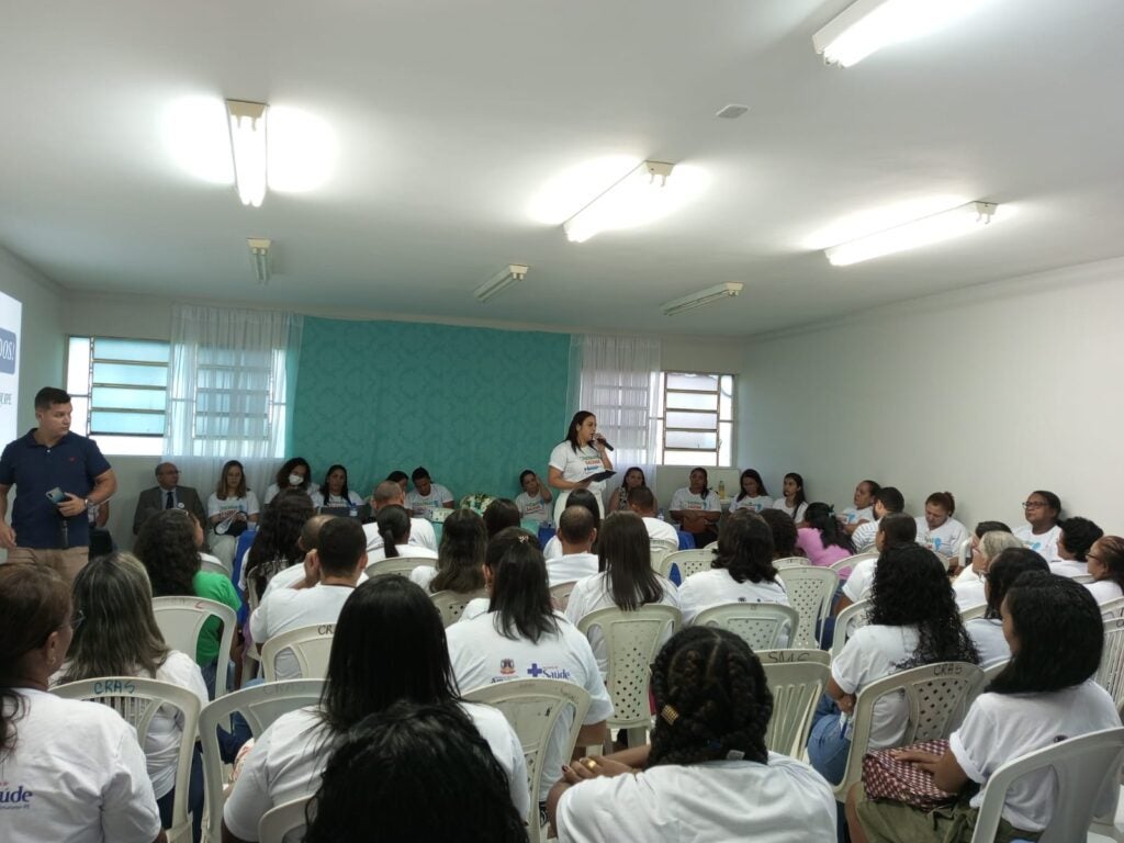O evento iniciou com acolhimento e apresentação da equipe de assessoria técnica e da Secretária de Saúde, Ana Tércia.