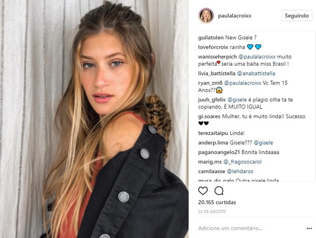 SEMELHANTE A GISELE BÜNDCHEN – A modelo Paula La Croix, de 15 anos, vem ganhando notoriedade nas redes sociais por sua semelhança com a modelo mais famosa do mundo, Gisele Bündchen, que passou a dominar o universo fashion, também aos 15 anos, quando estreou como modelo.