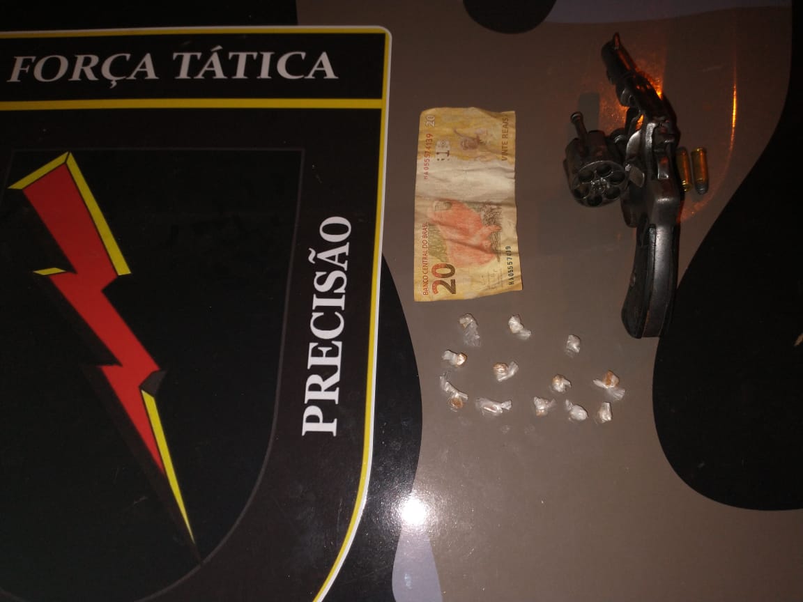 O suspeito – identificado pelas iniciais E. J. M. E. S., que conduzia a moto, conseguiu empreender fuga. O segundo envolvido, que estava na garupa foi capturado. “Com ele, apreendemos um revólver calibre 32 sem identificação de marca e numeração, com três cartuchos intactos, 12 pedras de crack, R$ 20,00 em dinheiro e uma moto Honda Pop 110, de cor branca e placa QRZ-5H58”, completou.