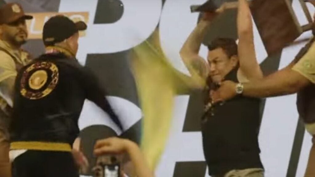 O tetracampeão mundial de boxe, Acelino “Popó” Freitas, acertou uma cadeirada no lutador argentino Jorge Daniel “El Chino” Miranda após o atleta rasgar a camisa…