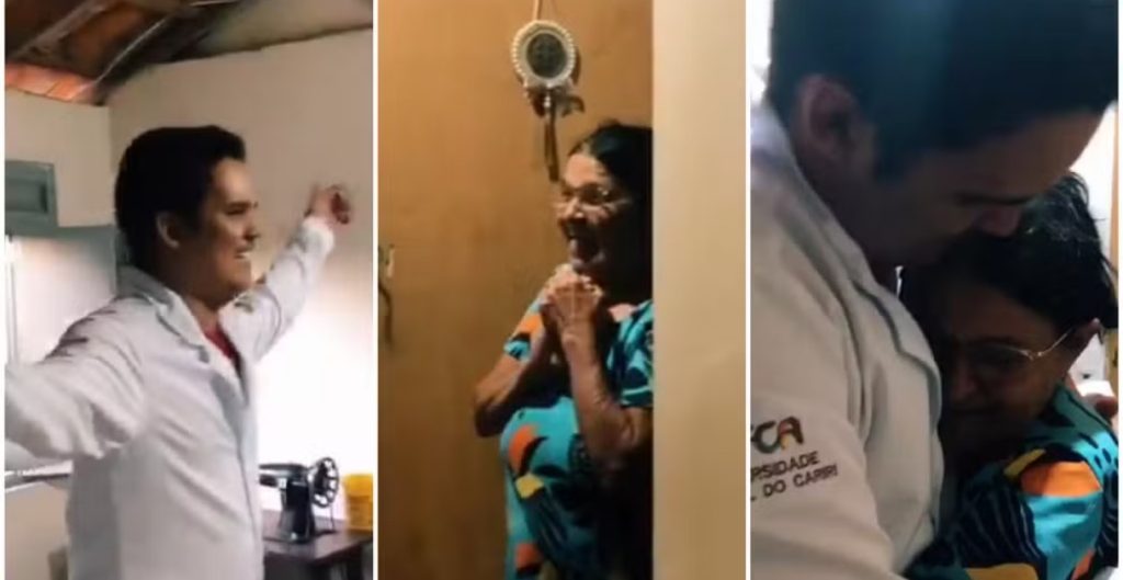 Filho de pedreiro e de merendeira, jovem é aprovado em Medicina; avó se emociona ao vê-lo com jaleco
