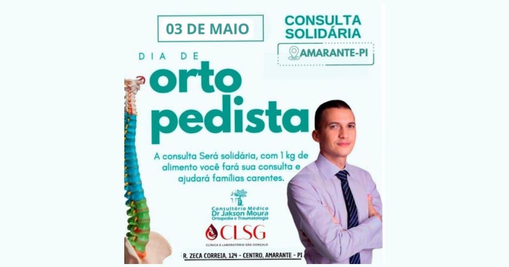 No dia 3 de maio, sábado, o Dr. Jakson Moura, ortopedista e traumatologista, vai realizar atendimento com consultas solidárias em Amarante. A ação visa facilitar…