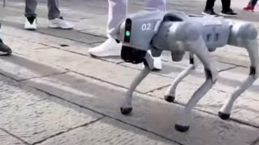 Um cão robô está sendo utilizado para coleta de lixo em uma região montanhosa no norte da China, que atrai milhões de turistas anualmente. A…