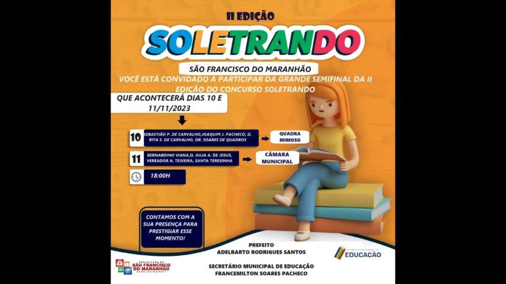 A Prefeitura de São Francisco do Maranhão, por meio da Secretaria Municipal de Educação, vai realizar a Semifinal da II Edição do Concurso Soletrando nos…