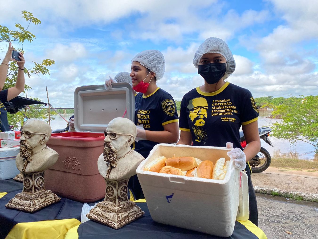 Um exemplo foi a Panificadora Modelo, que fez a doação dos pães para atender um maior público, a Eugenia Artes Stylos, empresa de artigos de decorações que fez a doação de mesas, toalhas de mesas e a caixa de som para facilitar o desenvolvimento da ação e também o Studio Tarci 7, com a doação de tocas, luvas e isopores, para trazer uma maior segurança para a população.