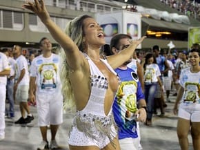 Uau! Dani Vieira usa macacão ousado para cruzar a Marquês de Sapucaí